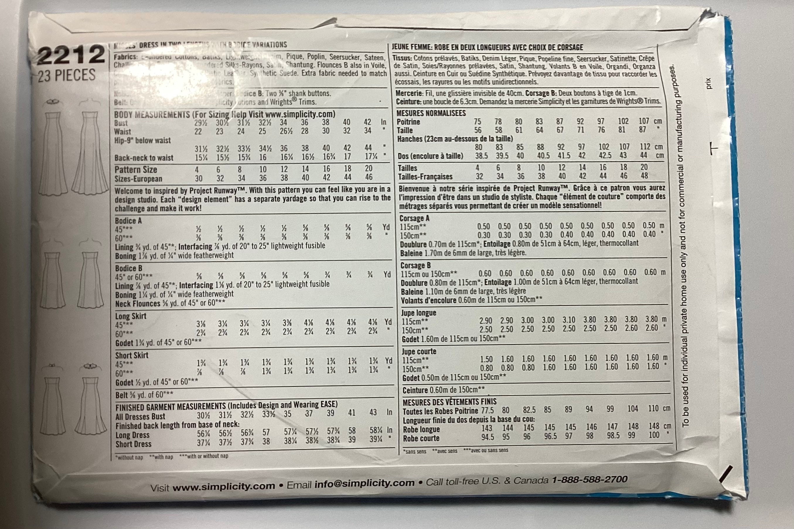 Amazon Com Simplicity Sewing Pattern 2212 Misses Dresses Inspired By Project Runway Collection Size P5 12 14 16 18 20 Arts Crafts Sewing